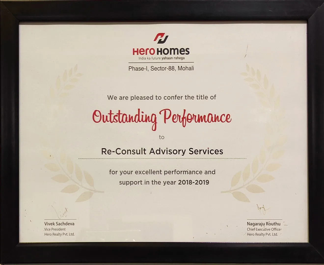 The company has been applauded for its exceptional performance in business and Real Estate advisory services