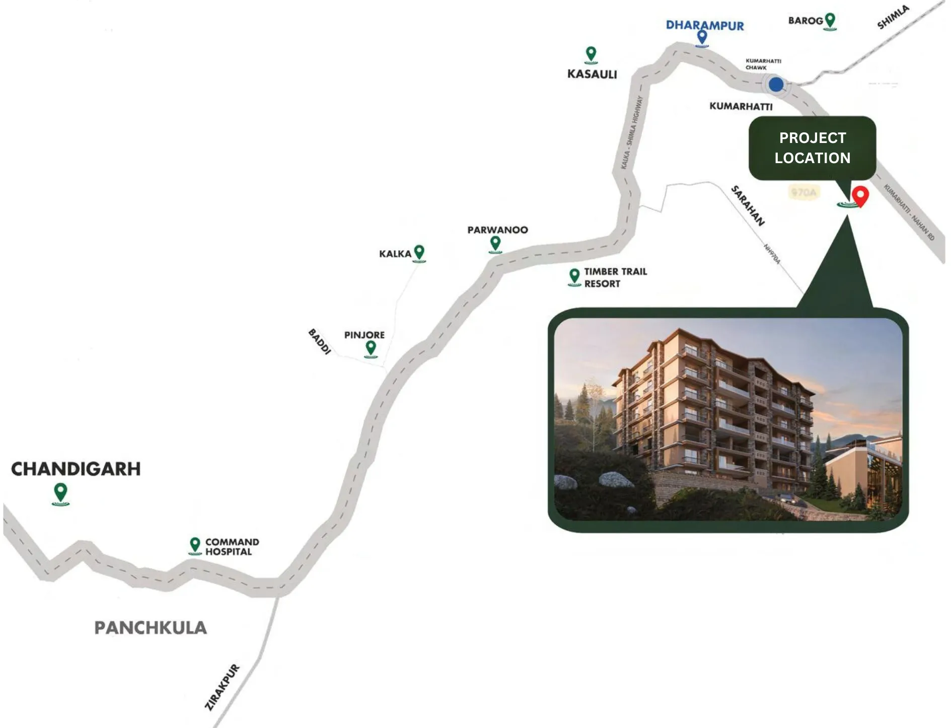 - Convenient Location: Close to the Shimla-Kalka Highway for easy access.