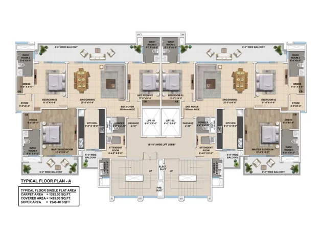 F Towers Mohali offers a variety of floor plans to suit different lifestyles and preferences. From 1-bedroom apartments to expansive 4-bedroom units, there are options for singles, couples, and families. Each unit is designed to maximize space and comfort, featuring open layouts and modern designs.