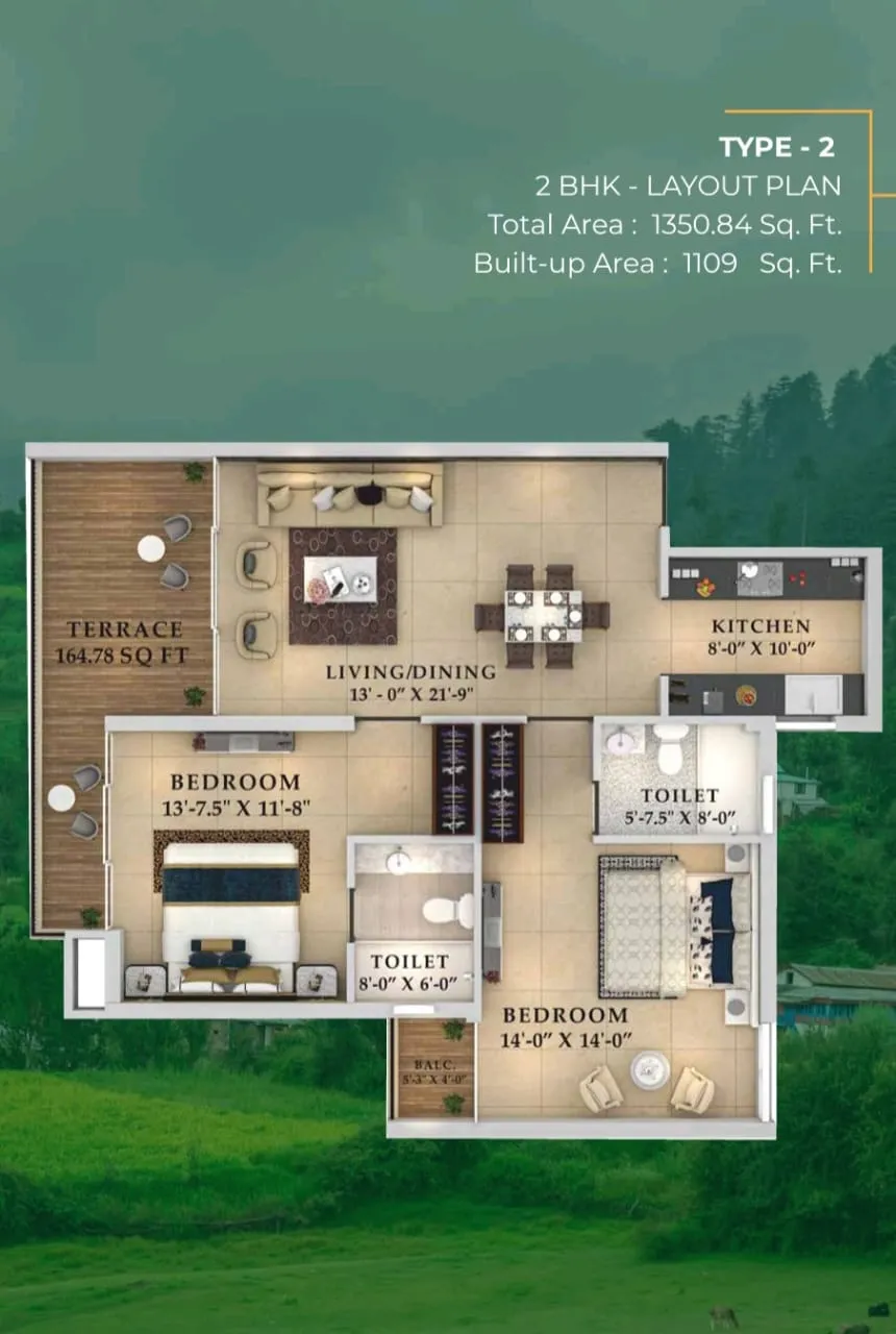 Our luxury homes boast spacious interiors, ranging from 200 to 250 sq.ft, along with open terraces that offer panoramic views of the surrounding hills. Each residence is meticulously designed to provide warmth, comfort, and elegance, ensuring a truly luxurious living experience.
