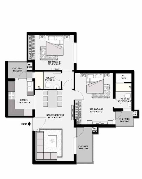 1390Sq.Ft 2BHK Apartment in Ubber Mews Gate | Property in Mohali