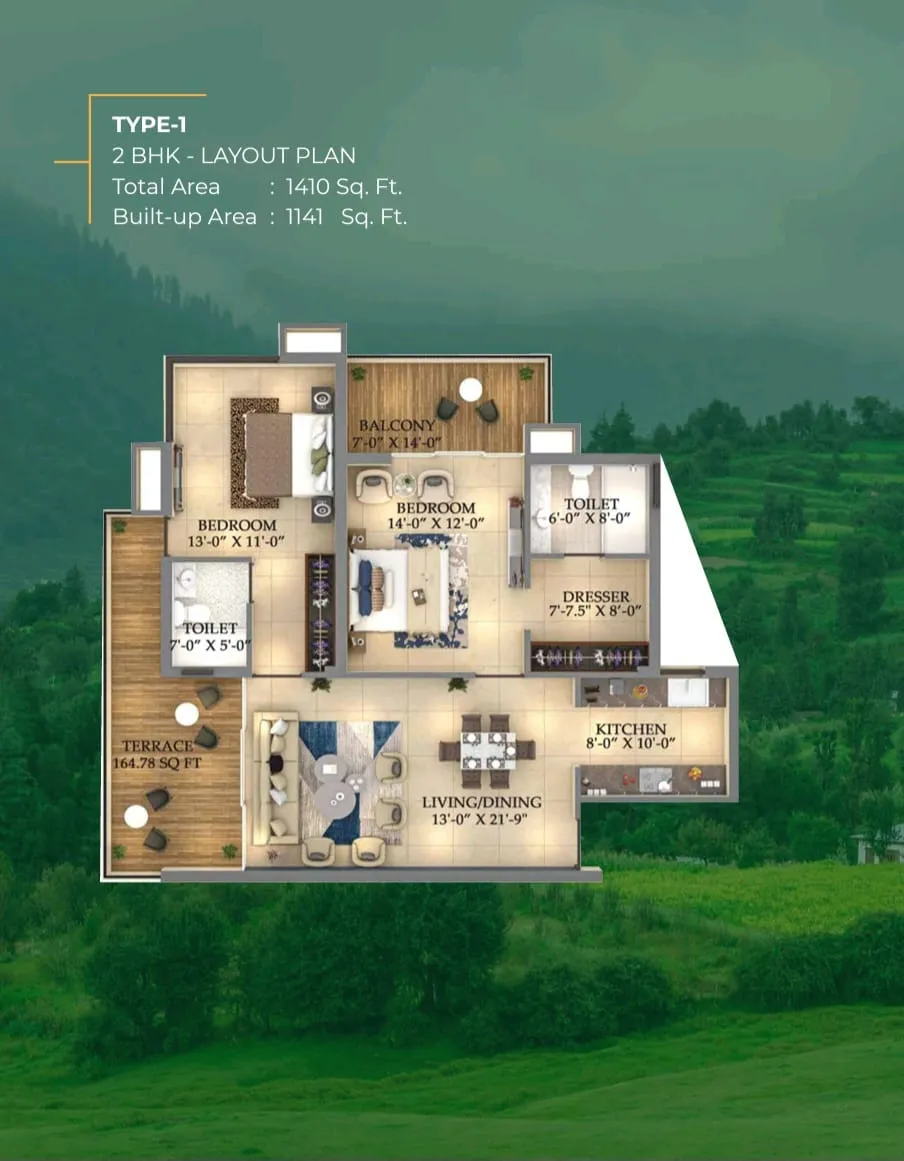 Our luxury homes boast spacious interiors, ranging from 200 to 250 sq.ft, along with open terraces that offer panoramic views of the surrounding hills. Each residence is meticulously designed to provide warmth, comfort, and elegance, ensuring a truly luxurious living experience.
