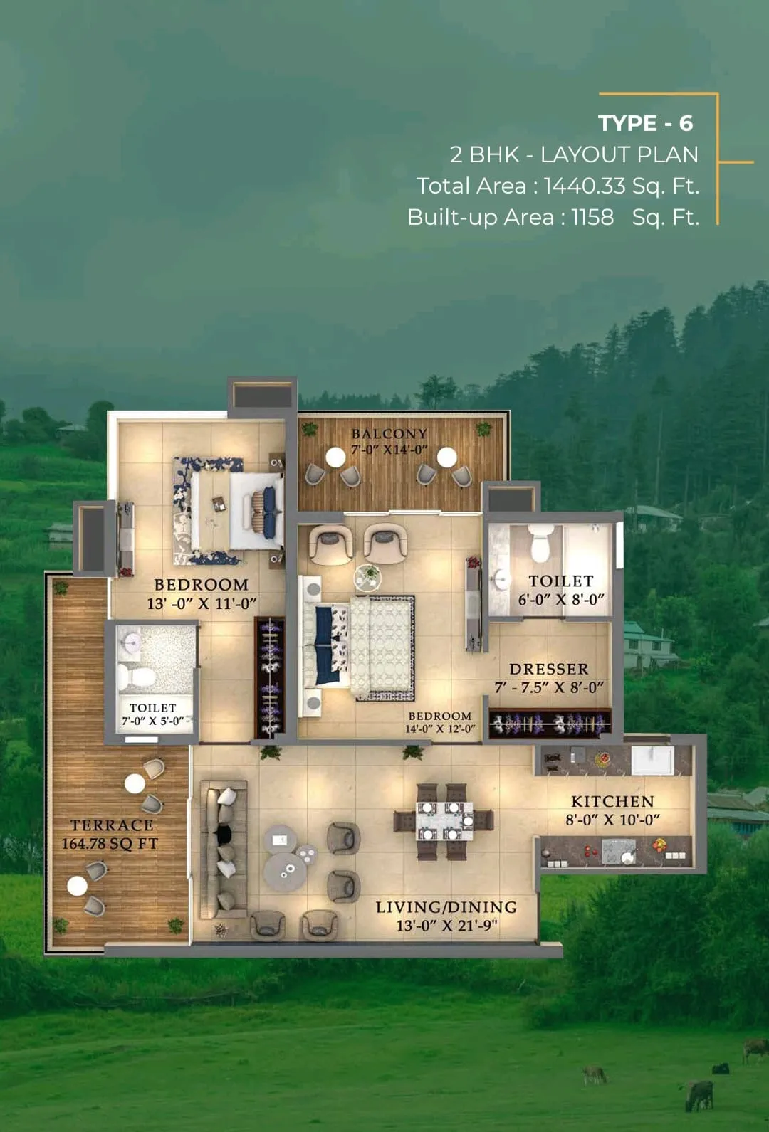 Our luxury homes boast spacious interiors, ranging from 200 to 250 sq.ft, along with open terraces that offer panoramic views of the surrounding hills. Each residence is meticulously designed to provide warmth, comfort, and elegance, ensuring a truly luxurious living experience.