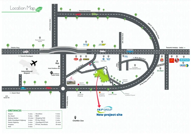 HLP Palmillas enjoys excellent connectivity to major locations in and around Zirakpur, making it an ideal residential choice. The township is strategically located on VIP Road and is also accessible from Airport Road, ensuring easy access to key areas. HLP Palmillas is connected by an extensive network of highways, making commuting a breeze for residents. The project’s proximity to important establishments such as Mohali IT Park, Fortis Hospital, ISB, renowned universities, and international schools adds to its appeal. Additionally, the presence of an existing and upcoming mall nearby ensures that residents have access to a variety of shopping, dining, and entertainment options. The convenient location of HLP Palmillas not only enhances the quality of life for its residents but also makes it a valuable investment opportunity with the potential for significant capital appreciation.