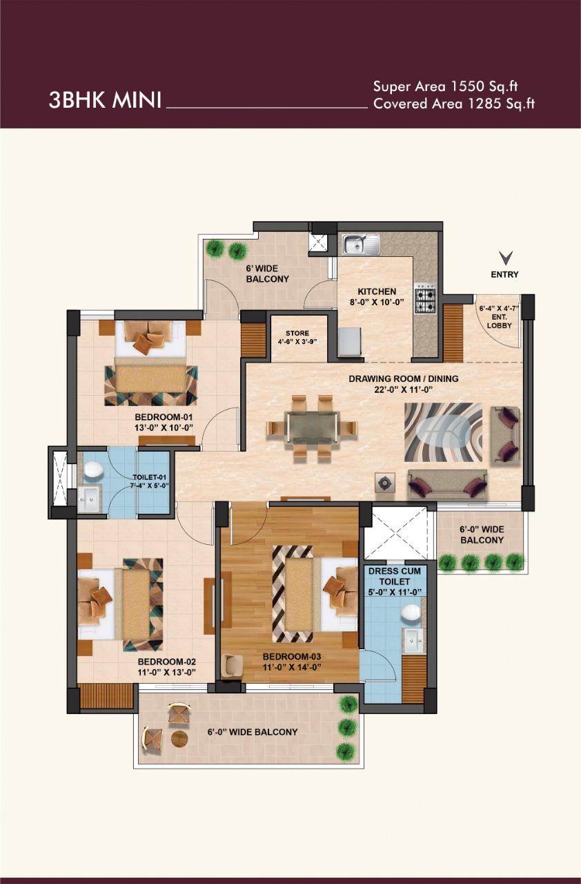• Area Size:1550 Sq.ft