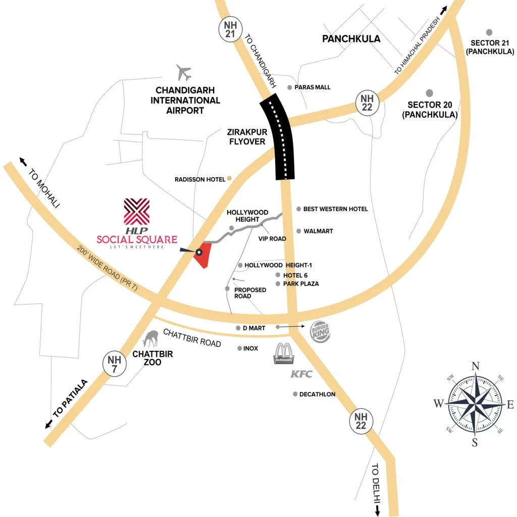 Given its prime location on the Zirakpur-Patiala National Highway and corner site on VIP Road, HLP Social Square is expected to attract a high volume of foot traffic. Zirakpur is one of the fastest-growing commercial hubs in the region, with a steadily increasing population and improving infrastructure.