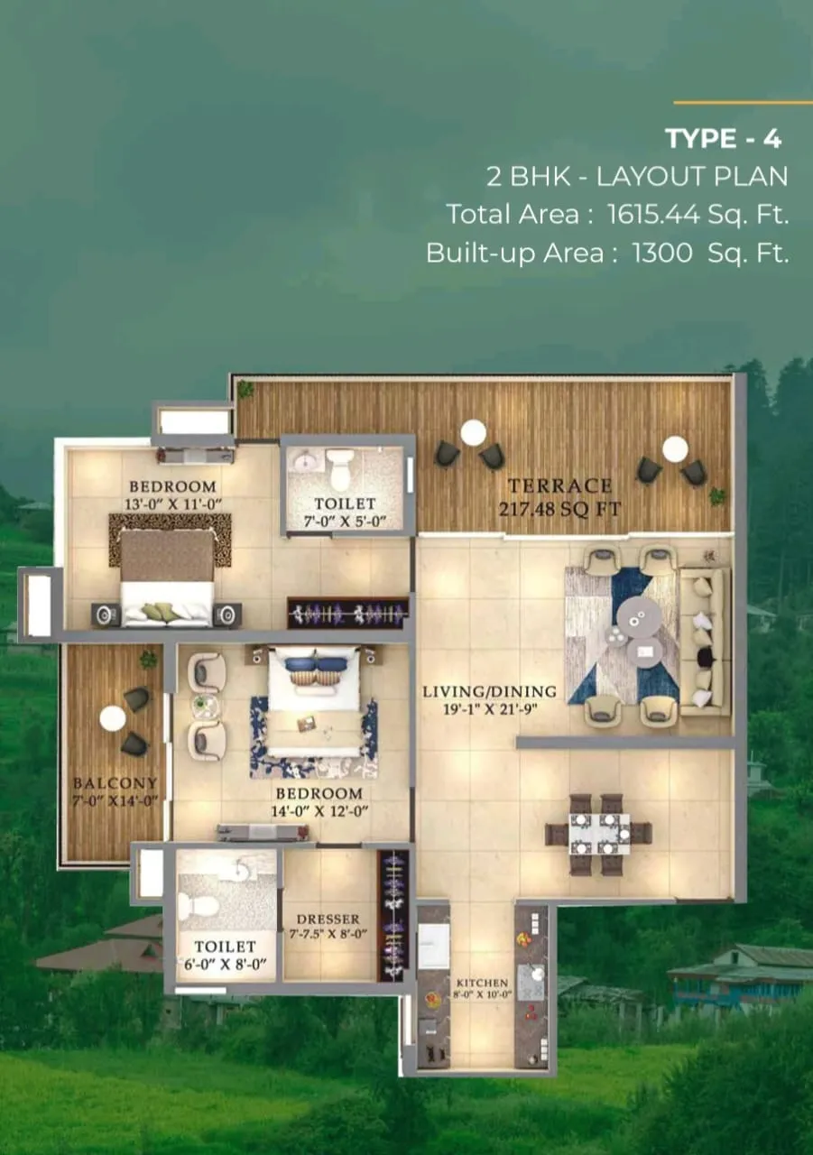 Our luxury homes boast spacious interiors, ranging from 200 to 250 sq.ft, along with open terraces that offer panoramic views of the surrounding hills. Each residence is meticulously designed to provide warmth, comfort, and elegance, ensuring a truly luxurious living experience.