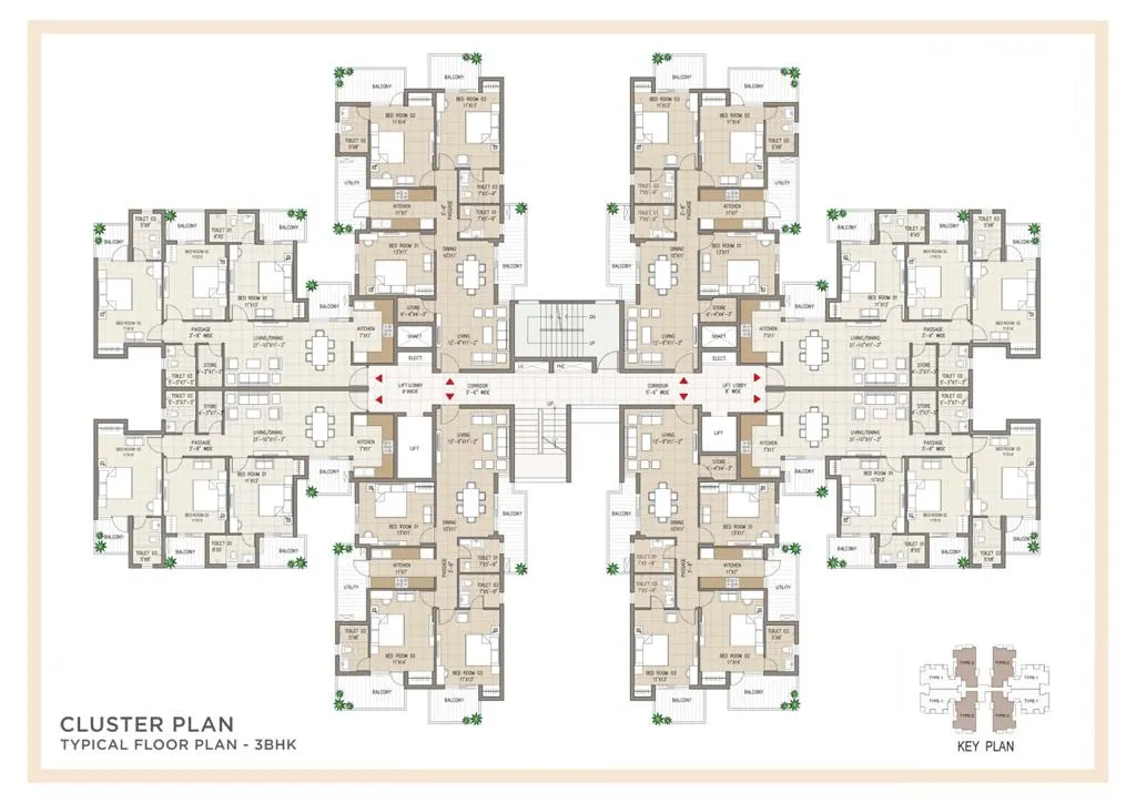 Our property comprises 11 towers spread over a total area of 13 acres of land, with 70% of open space. The construction consists of 8 floors, accommodating a total of 968 units. Each unit is meticulously designed to offer maximum privacy and spacious living, with innovative features such as premium garden homes on the ground floor and private terrace homes on the top floor. Our three-side open apartments ensure enhanced ventilation and natural light, creating a comfortable and inviting living environment for residents.
