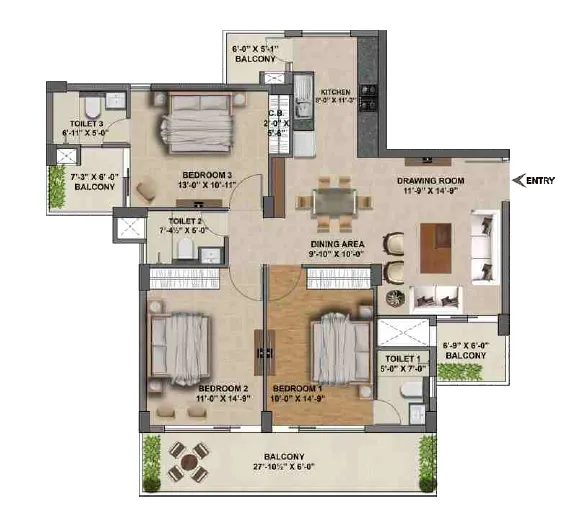 - Aurum 3 BHK Apartments: Designed for modern living, these spacious units offer an ideal blend of comfort and style.
