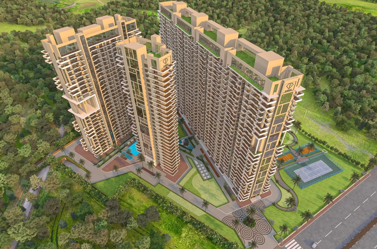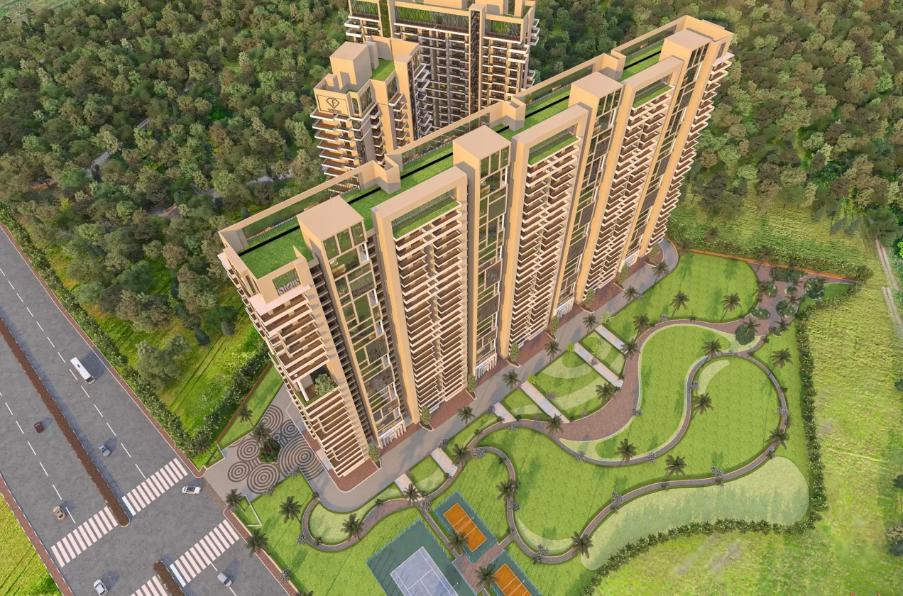 - Expansive Project Layout: Spread across 8 acres, the project consists of seven grand towers with 350 luxurious units. The entire project is a celebration of space, design, and architectural excellence, crafted with MIVAN construction technology for durability and quality.