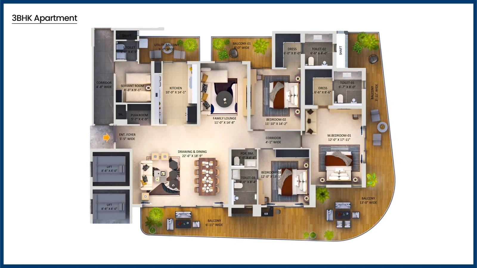 Invest in a 3 BHK or 4 BHK with Servant Room in F Towers and embrace a lifestyle that’s as luxurious as it is fulfilling.