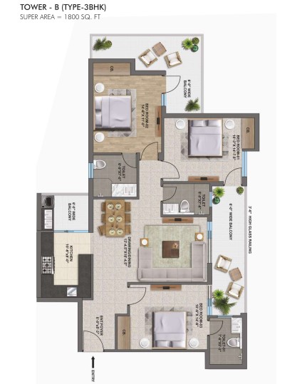 Experience the epitome of luxury living in our 3 & 3+1 flats, strategically located near the international airport in Chandigarh. These lavish residences are designed with thoughtful attention to detail, providing an abundance of space and comfort for their inhabitants. Awaken each morning to breathtaking views of the lush surroundings, and spend your evenings relaxing in expansive living areas. Every aspect of the apartment exudes exceptional quality, making it the perfect abode for those who demand the very best.
