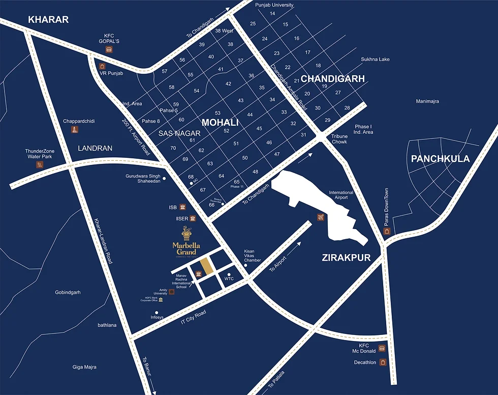 Our premium residential group housing project is strategically located in the bustling IT City of Sector 82-A, Mohali, along the renowned 200 ft wide international airport road. This prime location offers easy accessibility to major landmarks and ensures a well-connected lifestyle for residents.