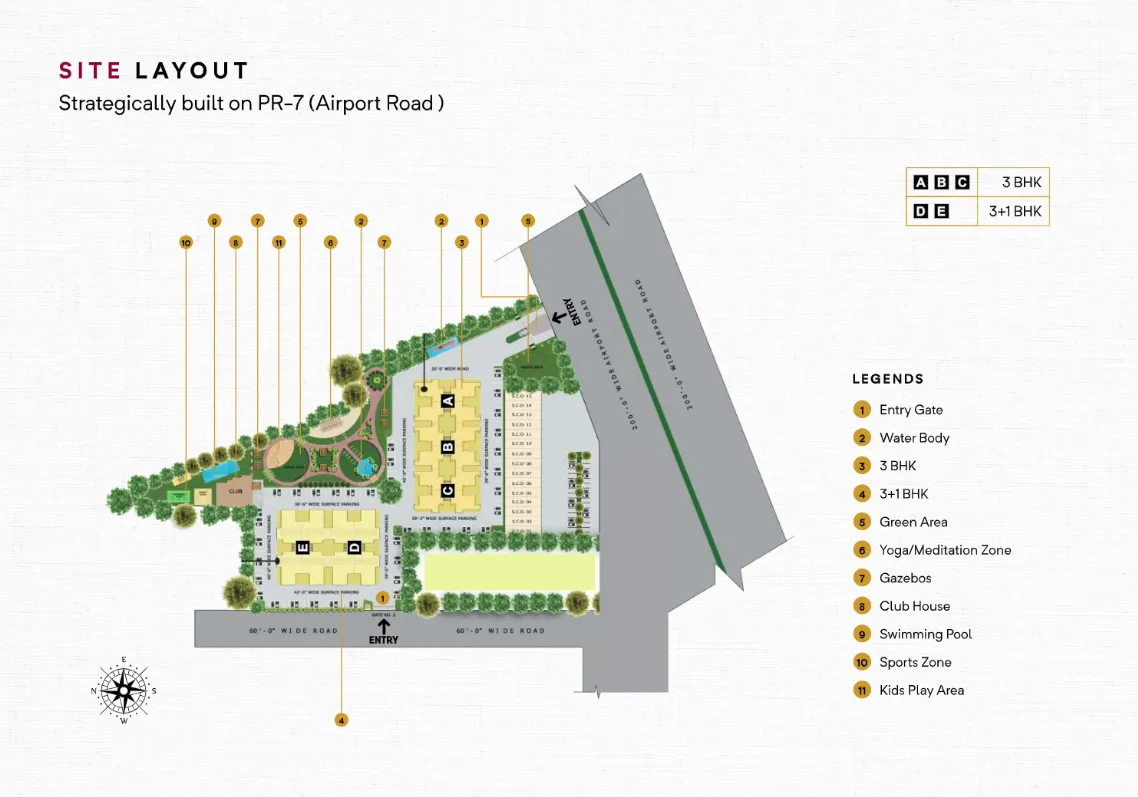 🌿 Cluster Development Model: Step into a realm where monotony meets its match. Our property stands out with its innovative cluster development model, offering a refreshing departure from conventional residential layouts. Each independent floor boasts spacious 3 BHK and 3+1 BHK premium residences, meticulously designed to cater to your every need.