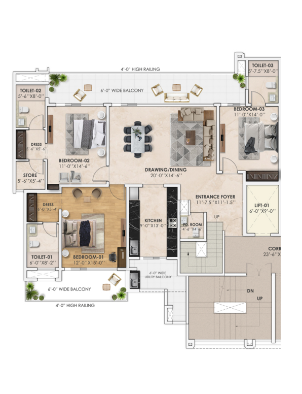 Property offers a variety of residential options, including spacious apartments, penthouses. 3BHK / 3BHK with Servant / 4BHK with servant catering to different preferences and lifestyles.