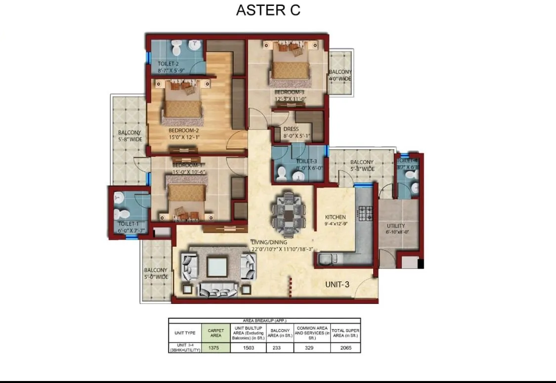Ready to Move 2065 sq.ft 3BHK apartment with Utility in New Chandigarh