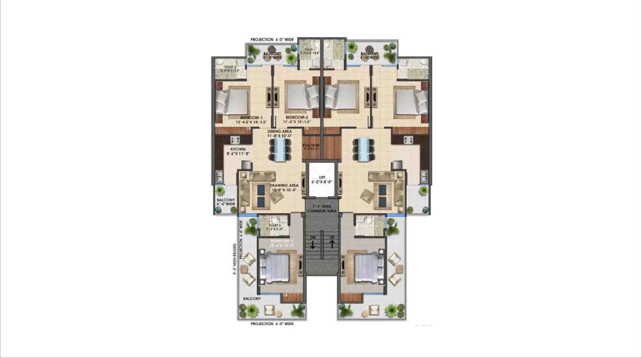 🏡 Contemporary Apartments: Experience the epitome of modern living with meticulously designed apartments that seamlessly blend contemporary architecture with functional features. Choose from spacious 3BHK and 4BHK configurations, ranging from 1450 to 3400 Sq.Ft., ensuring ample space for you and your loved ones.