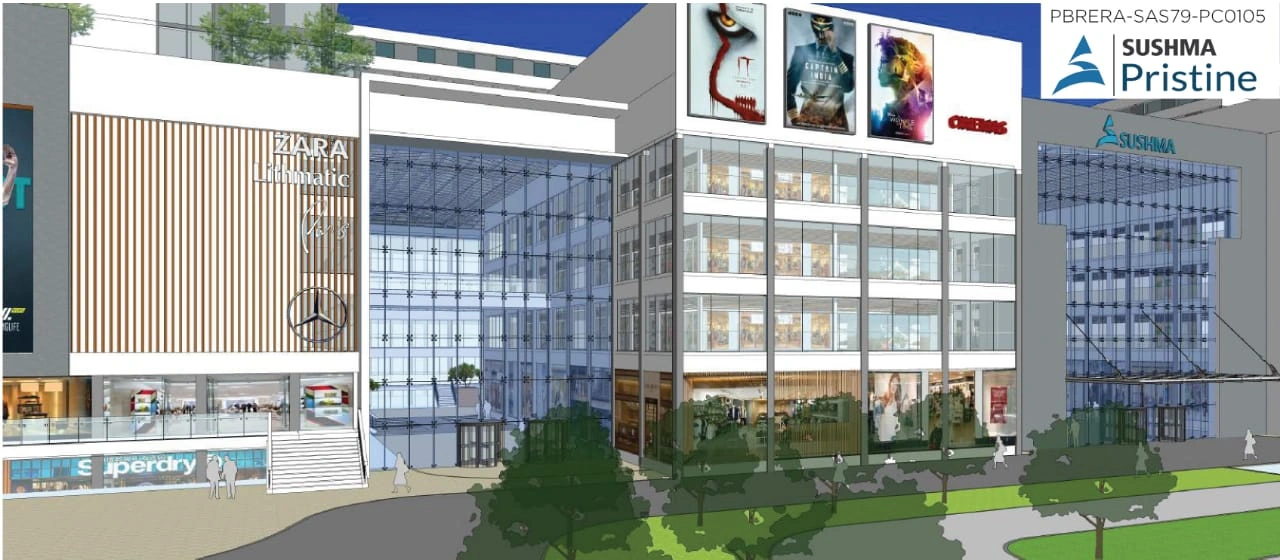 Sushma Pristine Zirakpur Commercial Spaces on PR7 Road near Chandigarh Airport.