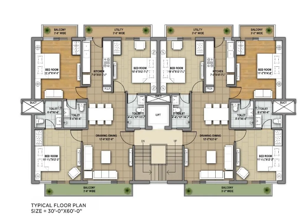 Spacious 3 BHK Apartments: Each apartment is 1475 sq. ft., offering plenty of space and natural light. Large balconies and green lawns enhance your living experience.