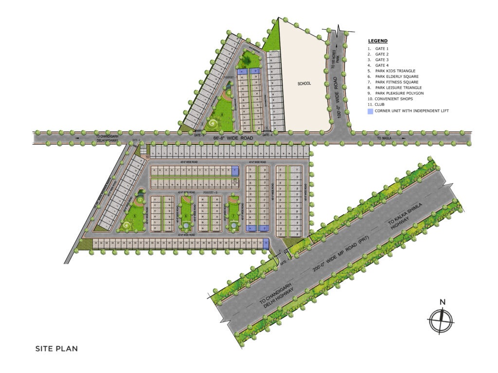 The location on PR-7 International Airport Road provides excellent connectivity to Chandigarh, Delhi, and other major cities. It’s also close to shopping centers, schools, hospitals, and entertainment options, adding convenience to your lifestyle.